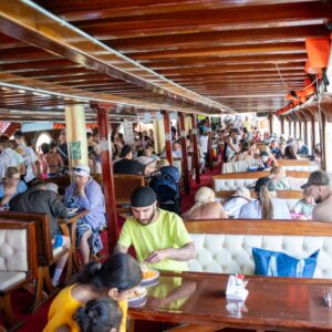 Během plavby vám posádka naservíruje oběd, který je již zahrnut v ceně výletu. Milovníci zmrzliny mají možnost ochutnat jednu speciální, podávanou v melounu(není zahrnuto v ceně).